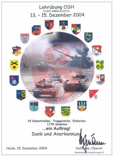 13.-15.12 - Lehrübung "OSH-Schießen" auf dem Truppenübungsplatz Oberlausitz. Bei dieser Lehrübung wurde dem 74. Offiziersanwärterjahrgang das breite Spektrum des Verzögerungsgefechts demonstriert; insbesondere das Zusammenwirken mit Artillerie und Pioniertruppe, sowie die Zusammenarbeit mit der Luftwaffe bei der Nutzung von Close Air Support.