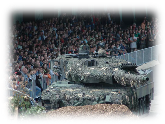 eindrucksvoll vor Augen zu führen. Daneben waren Kampfpanzer der Hacketäuer an dynamischen und statischen Waffenschauen beteiligt. Die Resonanz war hervorragend, ca. 30.000 Besucher erstürmten an diesem Tag die Generalfeldmarschall-Rommel-Kaserne in Augustdorf. Im Mittelpunkt ihres Interesses, die Kampfpanzer vom Typ Leopard 2A6 M.