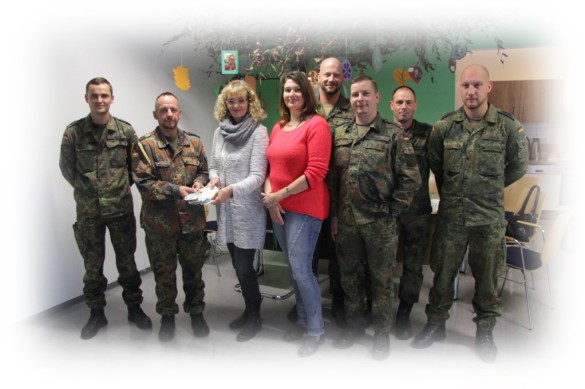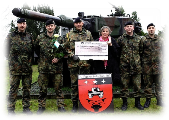 30.01.2017 - Hut ab!! Bleibt hier festzustellen. Denn die stolze Summe von 5.555 Euro sammelten die Kameraden der 4./Kompanie mit ihrem Spieß Oberstabsfeldwebel Frank Düster, während sie von März bis Oktober ihren Dienst im 44. Deutschen Einsatzkontingent Kosovo Force (KFOR) leisteten. Der gesamte Betrag wurde an den Ambulanten Kinder- und Jugendhospizdienst aus Unna gespendet.