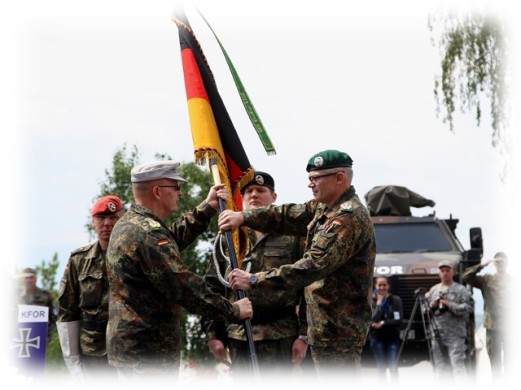 Im Kosovo, Übergabe der Truppenfahne an den Kommandeur des 44. Deutschen Einsatzkontingents KFOR, Oberst Siegfried Zeyer, stellvertretender Kommandeur Panzerbrigade 21.