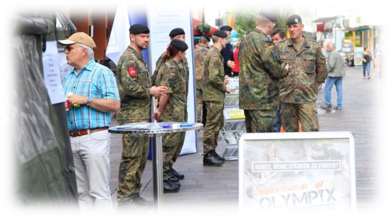 31.05. - Bundeswehr zum Anfassen beim Aktionstag in Paderborn. „Wir wollen mit dem Aktionstag die Bundeswehr im öffentliche Bewusstsein präsent halten, anfassbar und ansprechbar sein, durchaus auch zu kritischen Themen“, so OTL Michael Prestel, zum Zweck der Veranstaltung. Schließlich müsse eine Parlamentsarmee wie die Bundeswehr damit umgehen, „dass Menschen auch gegen uns sein können“, so der Kommandeur. Zudem wolle man mit der Veranstaltung auch die Paderborner Patengemeinde auf den Tag der Bundeswehr am 10. Juni in Augustdorf aufmerksam machen.