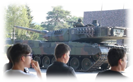 06.07. - Auf Einladung des Jugendoffiziers besuchten 300 Schüler aus Lippe auch die „Hacketäuer“ und erhielten so Berufsinformationen aus erster Hand. „Was kann ein Leopard-Panzer?" „Wie kann ich Entfernungen am besten einschätzen?" „Wie verhalten sich Soldaten, wenn sie im Kampf angegriffen werden?". Antworten auf viele Fragen erhielten die Schüler hautnah, über den ganzen Tag verteilt, in der gesamten Kaserne und dem Truppenübungsplatz.