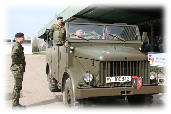 OTL Kay-Uwe Steuernagel und übertrug an den Nachfolger, Major Falko Thelen, die Dienstgeschäfte. Für Steuernagel hatte das Bataillon noch eine besondere Überraschung vorbereitet: Er wurde mit dem Bataillonseigenen Oldtimer, einem original Borgward vom Appellplatz ausgefahren.