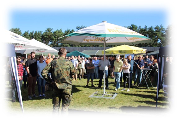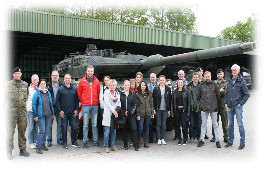 18.04. – Augustdorf/Essen. Im Rahmen der Öffentlichkeitsarbeit besuchte eine Gruppe Führungskräfte eines Essener Energieversorgungskonzerns das Bataillon. Darunter auch wieder engagieren Bürger, die schon dem Bataillon 2011 bejahend zur Seite standen.