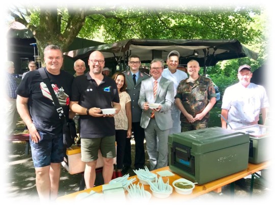 1.7. – Mit der Feldküche rückten die Hacketäuer im Rahmen der Öffentlichkeitsarbeit aus nach Paderborn, zur Patenstadt des Bataillons. Trotz fast tropischer Temperaturen schenkten die Kameraden hunderte Portionen der klassischen und immer beliebten Erbsensuppe aus. Das große Familienfest im Riemekepark mit mehreren tausend Besuchern, bildete den Höhepunkt der Festwoche und es wurde begeistert gefeiert.