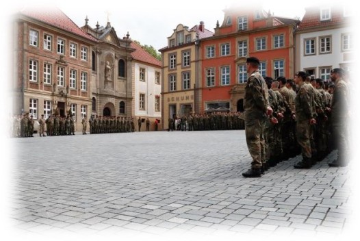 27.5. - Paderborn, hier waren die Hacketäuer in der Patenstadt auf dem Marktplatz in Paderborn angetreten, um rund 100 Kameraden zum Einsatz in den Irak zu verabschieden. Das Kontingent bildet dort bis Anfang 2020 Führungskräfte der zentralirakischen Armee aus.