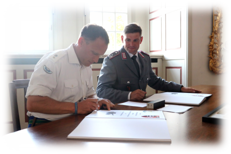 Es war ein besonders emotionaler Moment, als der englische Regimentskommandeur Colonel Nick Coly und der Kommandeur des Panzerbataillons 203, Oberstleutnant Jörg Stenzel, zwei Freundschaftsbücher signierten. „Eines bleibt bei den „Hacketäuern“, das andere geht nach Tidworth“, erläuterte Stenzel unter dem Applaus der Zuschauer. In einem waren sich alle Kameraden sicher: „Wir sehen uns wieder!“ (Textauszug Bundeswehr/Guntmar Wollf)