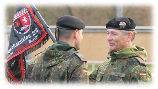 Nach dieser emotionalen Verabschiedung übernahm Thelen als „Neuer“ das Kommando über die Paradeaufstellung und meldete den Bataillonsappell ab. Der zuletzt beim deutschen Verbindungskommando in Frankreich eingesetzte Stabsoffizier hatte damit seine erste "Amtshandlung" als Stellvertreter des Kommandeurs des Panzerbataillons 203 vollzogen. "Herzlich Willkommen" und Hacke-Tau!