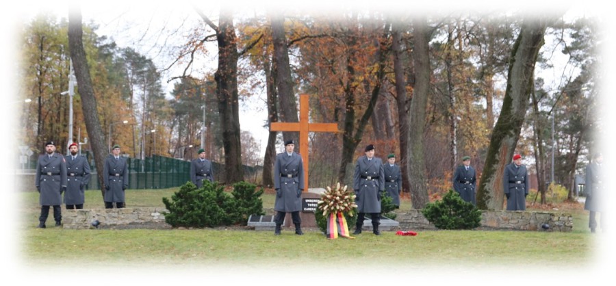 23.11. - Ehrenwachen haben rund um den Ehrenhain der Rommel-Kaserne Aufstellung genommen zum gemeinsames Gedenken anlässlich des Volktrauertages. Bei der jährlichen Gedenkfeier und an der Seite von Lieutenant Colonel Robert Wells, Standortkommandant der britischen Streitkräfte in Paderborn, mahnte Oberst Jochen Geck, Stellvertreter des Brigadekommandeurs. Dabei nutzte er ein Zitat des ehemaligen Bundespräsidenten Richard von Weizsäcker, zur aktiven Auseinandersetzung mit den Ereignissen der Weltkriege. „Wer vor der Vergangenheit die Augen verschließt, wird blind für die Zukunft“, so der eindringliche Appell an die geladenen Gäste und Abordnungen der Verbände und Einheiten der Panzerbrigade 21 „Lipperland“.