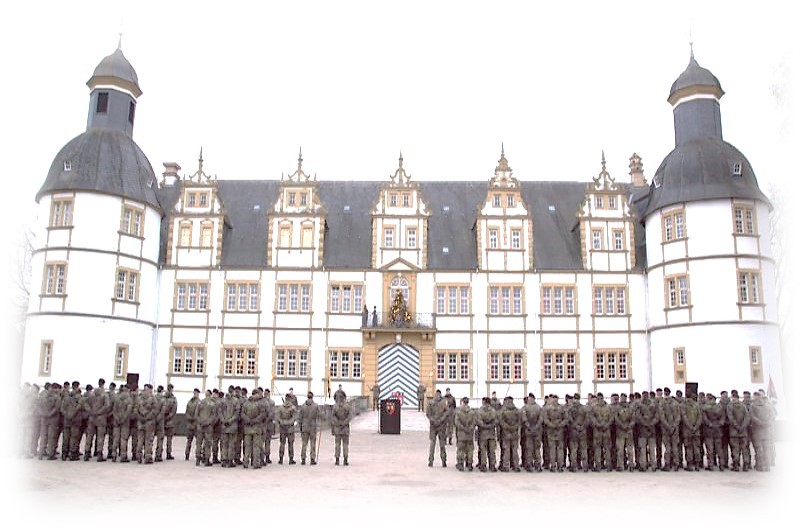 13.12. - Augustdorf/Schloß Neuhaus. Den Jahresabschlussappell haben die „Hacketäuer“ in diesem Jahr vor der Kulisse von Schloss Neuhaus bei Paderborn zelebriert. Bataillonskommandeur Oberstleutnant Jörg Stenzel führte den Appell mit zivilen Gästen auf dem Schlossplatz durch. Pfarrer Thomas Stolz, Leiter des Pastoralverbundes Paderborn Nord-Ost-West, ehemaliger Militärpfarrer und Kommandopfarrer bei den Spezialkräften, kennt die Besonderheiten des Soldatenberufes. Er gab den angetretenen Soldaten noch den geistlichen Impuls mit auf den Weg, dass der Friede immer auch im eigenen Herzen beginne.