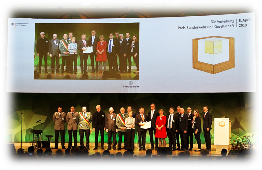 09.04. – Berlin/Paderborn/Augustdorf, die gelebte Patenschaft der „Hacketäuer“ mit der Stadt Paderborn wurde mit dem Preis „Bundeswehr und Gesellschaft“ durch Bundesministerin der Verteidigung, Ursula von der Leyen, in Berlin geehrt. Bürgermeister Michael Dreier freute sich über die Auszeichnung für die Stadt Paderborn. „Der Preis würdigt die enge Verbundenheit zwischen unserer Stadtgesellschaft und der Bundeswehr. Er zeigt, dass wir diese Verbundenheit aktiv leben, dies gilt über alle Generationen und Lebensbereiche hinaus.“ (Quellen Bundeswehr)