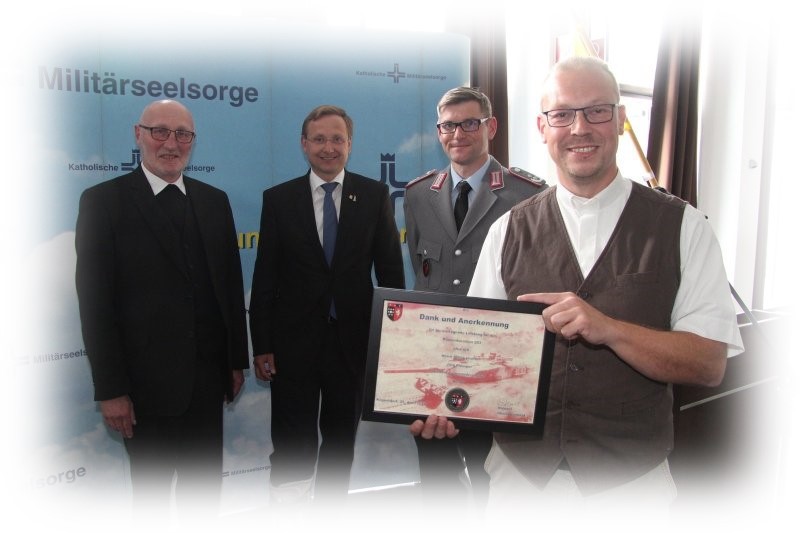 Im Bild v.l. Militärdekan Monsignore Rainer Schnettker, Bürgermeister von Augustdorf Dr. Andreas Wulf, Oberstleutnant Jörg Stenzel und Militärpfarrer Jörg Plümper. (Quellen LZ und Bundeswehr)