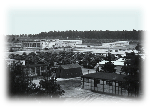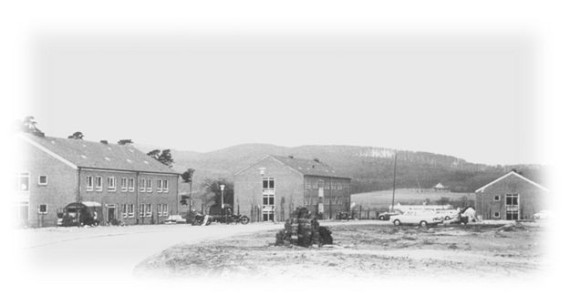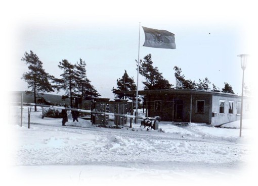 26.06. – Die feierliche Übernahme der Kaserne erfolgte mit einer Flaggenparade und Kranzniederlegung am Ehrenmal in Augustdorf. Bild: Die "Alte" Wache der Kaserne Augusdorf im Winter 1957-1958.