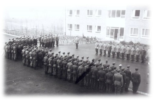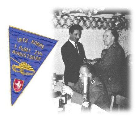 Die 1./214 wurde am 01.06.1959 als Stabs- und Versorgungskompanie aufgestellt. Stärke, 10 Offiziere, 57 Unteroffiziere, 118 Mannschaften = 185 Soldaten. Links erster Kompaniechef - Hptm Bernhard Gittrich Kompaniefeldwebe - HptFw Horst Hübner