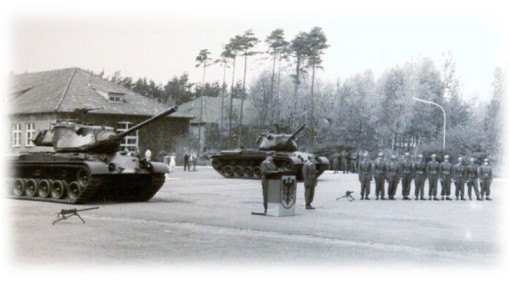 01.06. – Durch Umgliederung und Teilung wurde das „Panzerbataillon 214“ als jüngstes Bataillon der PzBrig 21 in Dienst gestellt. Im Bataillon mussten die 1./ und 3./Kompanie neu aufgestellt werden. Die 2./ und 4./Kompanie wurden bereits am 01.07.1956 (Panzerbataillon 1 in DEDELSTORF) aufgestellt und im Anschluß umbenannt. Sie waren bereits mit Waffen und Gerät sowie personell voll ausgerüstet. Die 1./Kompanie (Stabs- u. Versorgungskompanie) und die 3./Kompanie wurden durch abgabe von Personal und Material neu aufgestellt. Teile der Gerätschaften wurden vom PzBtl 213 übernommen, weiteres Material und Großgerät das in der Anfangszeit sehr schleppend geliefert wurde, kam aus den Depots HESEDORF und DARMSTADT. Im Zuge der Umgliederung vom Kampfpanzer M 47 auf den Kampfpanzer M 48 A2 war die 2./Kp mit 4 und die 4./Kp mit 3 Kampfpanzern M 48 A2 schon ausgestattet.
