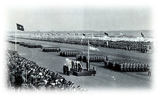 16.08. - Erstes Feierliches Gelöbnis in der Öffentlichkeit. Alle zu vereidigenden Soldaten der Panzerbrigade 21 wurden mit großem Zapfenstreich auf dem Jahn-Sportplatz an den Pinneichen in DETMOLD vereidigt.
