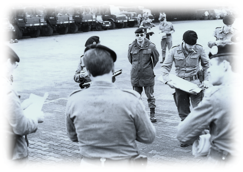 28.11.-03.12. - Mit Unterstützung durch die Rahmenleitungsgruppen und der Kampfunterstützungstruppe ging es in die Übung BÄRENFANG I. Im Raum BAD SALZUFLEN, MINDEN, STEINHAGEN, BAD NENNDORF, HAMELN und STEINHEIM wurden einzelne Abschnitte, wie Gefechtsmarsch, schneller Wechsel der Gefechtsstände und Aufklärung geübt. Ein weiterer Schwerpunkt war das Übersetzen über die WESER unter Beteiligung der britischen Pioniere. Den Abschluss bildete eine Parade und Aufenthalt in LAGE.