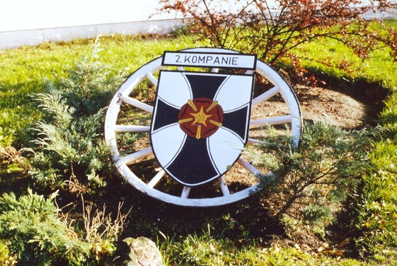 14.11. - Das Panzerbataillon 214 sollte ein neues Wappen erhalten, das "Vorläufer-Wappen", hier rechts 2./Kompanie sollte ersetzt werden. Der Kommandeur wollte ein heraldisch konformes Wappen schaffen. Von drei Entwürfen die er in einer Besprechung allen Offizieren und Feldwebeln des Bataillons vorlegte, entschieden sich die Anwesenden für den Entwurf links: "Eisernes Kreuz belegt mit Lippischer Rose".