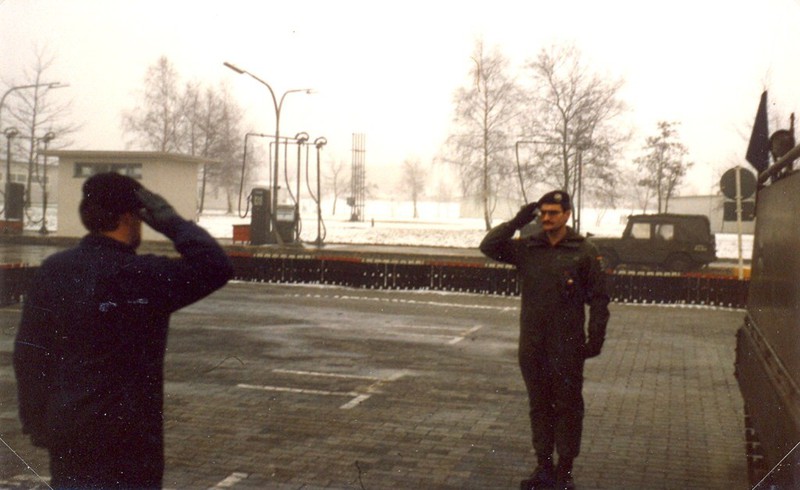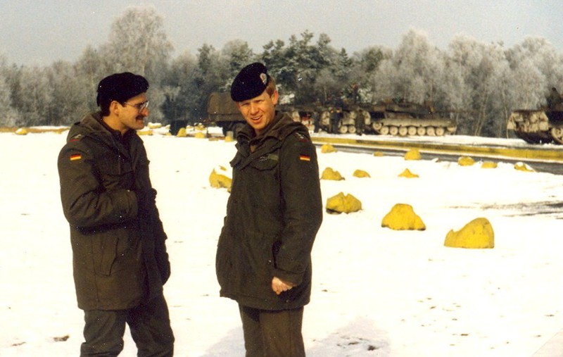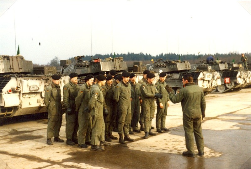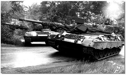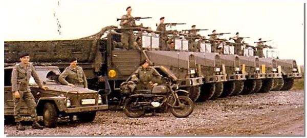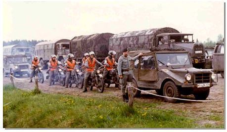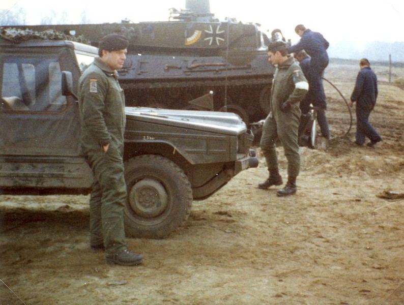 Im Bild rechts, 2./214 nach Übungsende in Anfahrt zum Tanken mit KpChef Hptm Burkhard Heckmann.