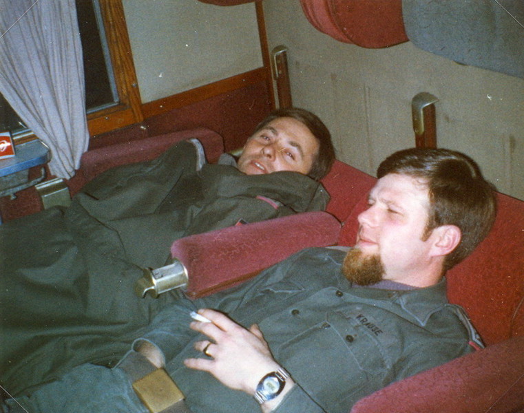 Im Bild: Transportzug 1./214 am Lager "HÖRSTEN", v.l. Hfw Isermann mit "Chef"-Fahrer OG Peter Geuert.