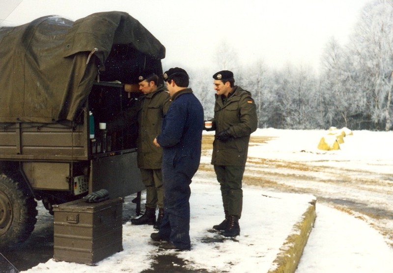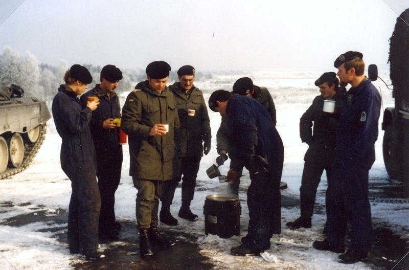 14.-28.01. - Im Rahmen der Panzerbrigade 21 begann das Jahr mit einem TrpÜbPl-Aufenthalt, mit 315 Soldaten verlegten die 214er nach BERGEN auf die Biwakplätze TILSIT I und II, die Rückwärtigen Versorgungsdienste (VersDst) lagen in MEISSENDORF. Der Anmarsch zum Übungsplatz wurde als Marschübung für die Räderteile unter Führung von Hptm Wolff genutzt. Am 21.und 22.01. fand die Gefechtsübung der Brig „MUTIGER MATADOR“ statt. Auf dem Übungsplatz wurde wieder ein Tarnwettbewerb für die VersDst durchgeführt, außerdem nahmen die Soldaten an der BrigÜbung „SCHNELLER UMSCHLAG“ teil. Für die Panzerteile stand der Wettbewerb der PzGrp im Vordergrund.