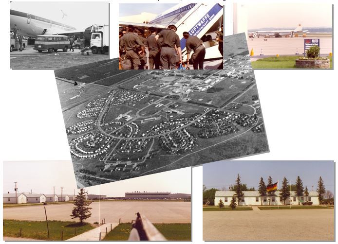 Abflug vom militärischer Teil Flughafen KÖLN-PORZ, unten Teile Lager Shilo.