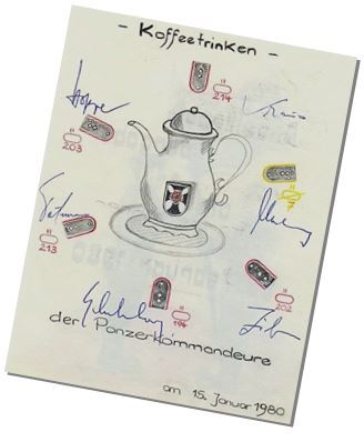 15.01. - Erstmalig fand ein Treffen der Panzerführer WESTFALEN beim Panzerbataillon 214 statt. Der Kommandeur OTL Kraus, hatte dazu die Kommandeure der Divisions-Panzerbataillone 194, 202, 203, 213 und PzAufklBtl 7 zum Kaffeetrinken mit Meinungsaustausch in den Stab eingeladen.
