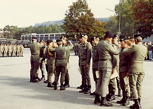 25.09. - Bei einem Bataillonsappell wurden die zu entlassenen Wehrpflichtigen verabschiedet, gleichzeitig wurden für Bestleistungen Urkunden überreicht und Beförderungen durchgeführt.