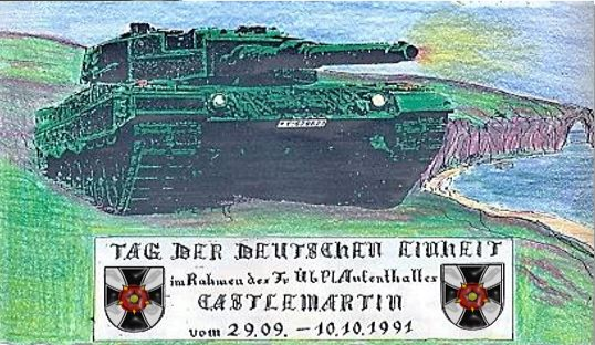 29.09.-10.10. - Verlegung zu einem TrÜbPl-Aufenthalt nach CASTLEMARTIN WALES. Die 214er nahmen daran mit Teilen der 1./Kompanie, der 3./Kompanie sowie der 4./211 teil. Zum Transport wurde eine russische Tupolew 154 genutzt, die die Bundesrepublik aus dem Bestand der DDR übernommen hatte.