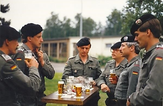 04.07. - Das Panzerbataillon 213 gedachte mit einem Empfang im Felde und Appell auf dem TrÜbPl AUGUSTA in der SENNE der Gründung vor 30 Jahren. Ein Kameradschaftsabend bildete den feuchtfröhlichen Abschluss der Feierlichkeiten. Hierzu hatte sich eine große Anzahl Ehemaliger am Lagerfeuer eingefunden, um von alten Zeiten zu schwärmen.