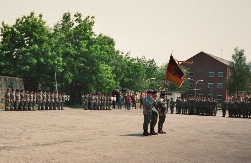 21.03. - Bataillonsappell zum Quartalsende mit der Entlassung der ausscheidenden Wehrpflichtigen. Der Kommandeur bedankte sich bei den „Reservisten“ für ihre geleisteten Dienste und wünschte ihnen Erfolg im weiteren Berufsleben. Danach verteilte er Urkunden für besondere Leistungen und führte Beförderungen durch. Mit den Hornbläsern und dem Schlachtruf des Bataillons endete der Appell.