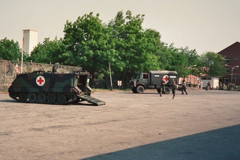 03.11. - Gemäß besonderem Befehl der Brigade fanden eine Sanitätslehrvorführung, Einrichtung und Betrieb eines Truppenverbandplatzes, Abtransport der versorgten Verwundeten mit Hubschrauber, auf dem Sportgelände des FC WESTERLOH in LIPPLING durch die SAN-Gruppen der Brigade statt. Diese Lehrübung wurde unter Leitung des Oberstabsarztes Dr. Henner Habicht vom PzBtl 214 durchgeführt.