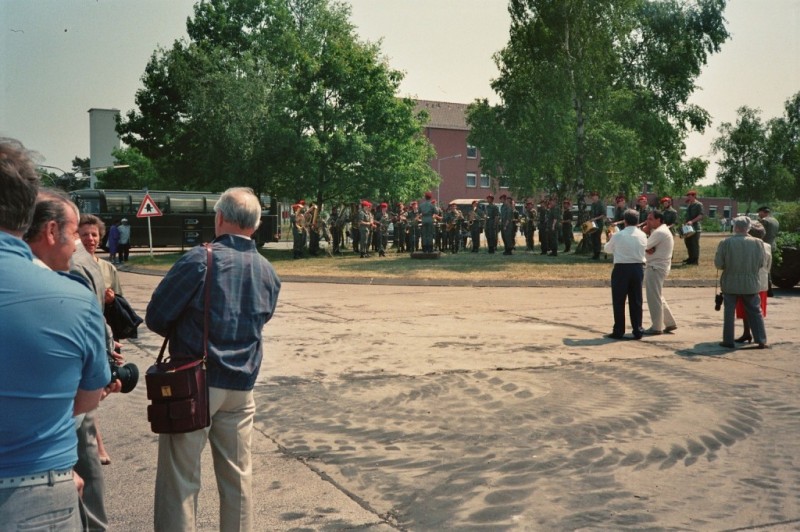 27.05. - Die 4./211 feierte im Schlossgarten ihrer Patengemeinde SCHLOSS HOLTE-STUKENBROCK ein gelungenes Sommerfest. Der Schlossherr Friedrich Moos und August-Wilhelm Bentmann aus LAGE hatten aus Dank ihrer beiden beeindruckenden Informationswehrübungen (IWÜ) bei der 4./211 zu diesem Feste eingeladen. In Anwesenheit von Kommandeur OTL Helmut Breidenbach und Kommandeur Panzerbataillon 211 OTL Peter Hahn, feierten die zur Entlassung stehenden Wehrpflichtigen ihren Abschluss. Am Abend waren der Bürgermeister Hermann Human mit einigen Ratsmitgliedern anwesend, zudem gaben sich die St.-Achatius-Fahnenschwenker und ein Jugendblasorchester die Ehre.