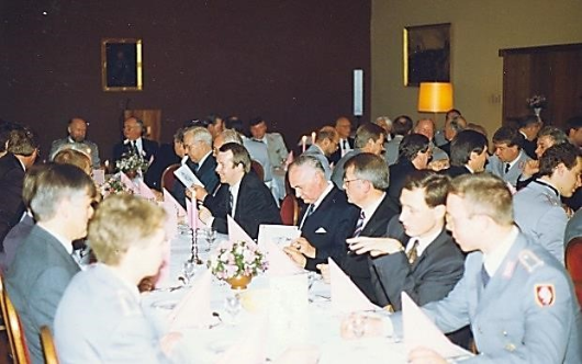 03.10. - Das Panzerregiment 10 begann seinen 50. Gründungstag im festlichen Rahmen beim Panzerbataillon 214 in AUGUSTDORF. Alle ehemaligen Kommandeure und einige ehemalige Offiziere und Unteroffiziere waren geladen, es war eine gelungene Veranstaltung, die abends in den Räumen des Wirtschaftsgebäude PzBtl 214 mit einem festlichen Essen und anschließendem Tanzabend seinen Abschuss fand.