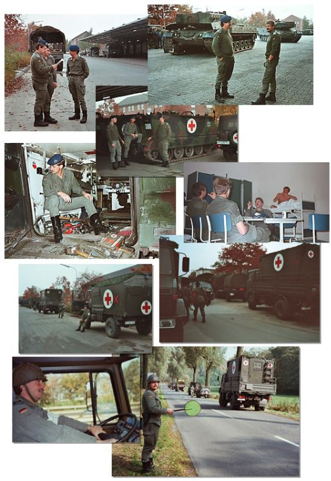 08.-12.10. - Das Bataillon nahm im Rahmen der PzBrig 21 mit der 1./-, 2./-, 3./214 und 3./213 als Übungstruppe Rot an der Divisionsgefechts-übung „SPRINGENDES ROSS 86“ durch die 7.Panzerdivision teil. Die Übung fand großflächig im Raum NIEDERSACHSEN um den TrÜbPl Bergen/Hohne statt, dort war auch das Übungsende angesetzt. Für die 214er war der erste Verfügungsraum am 09.10. SCHWARMSTEDT/ESSELN. Für diese Übung hatte das Bataillon zahlreiche Mob-Reservisten vom 03.–14.10. einberufen. Dazu Fotos aus Sicht Sanitätsdienst.