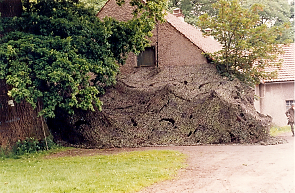 22.-24.06. Bataillonsgefechtsübung im Raum SENNE ohne 3./214 und 4./211. Der Schwerpunkt der Übung war die Besichtigung der 1./Kompanie in der Gefechtsausbildung. Foto, 1./214, Erstaufstellung zur Besichtigung Schleppdach. Der gut getarnte Kompaniegefechtsstand auf einem Bauernhof im Raum CAPPELN, wo die Kompanie zur Besichtigung untergezogen war.