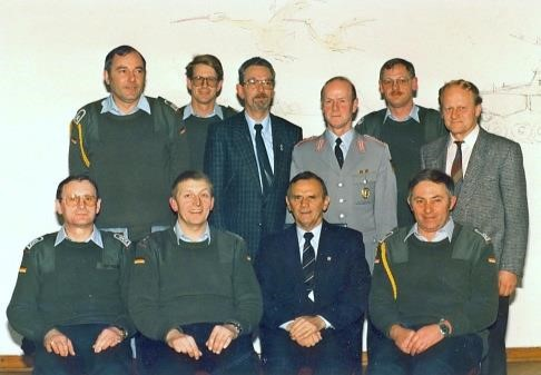 Der Gründungsvorstand: V. li. Hugo Fischer, Jürgen Schlüter, Peter Steffens, ROI Harding, Heinz Lehmann, Willi Becker, Klaus Pflug, Hans-Werner Burmester, Günter Löck, nicht im Bild, Kommandeur OTL Otto Spormann und Helmut Friemel.