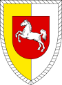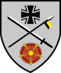 Seit 1959 führt die Stabskompanie sein Wappen als zweigeteiltes Schild. Das Westfalenross in der unteren Hälfte und im oberen Teil die „Lippische Rose“, sie steht für das ehemalige Fürstentum Lippe-Detmold, auf dessen Gebiet sich der Standort Augustdorf befindet. Der silberner Stechhelm in der Mitte der Rose symbolisiert die Wehrhaftigkeit des Verbandes.